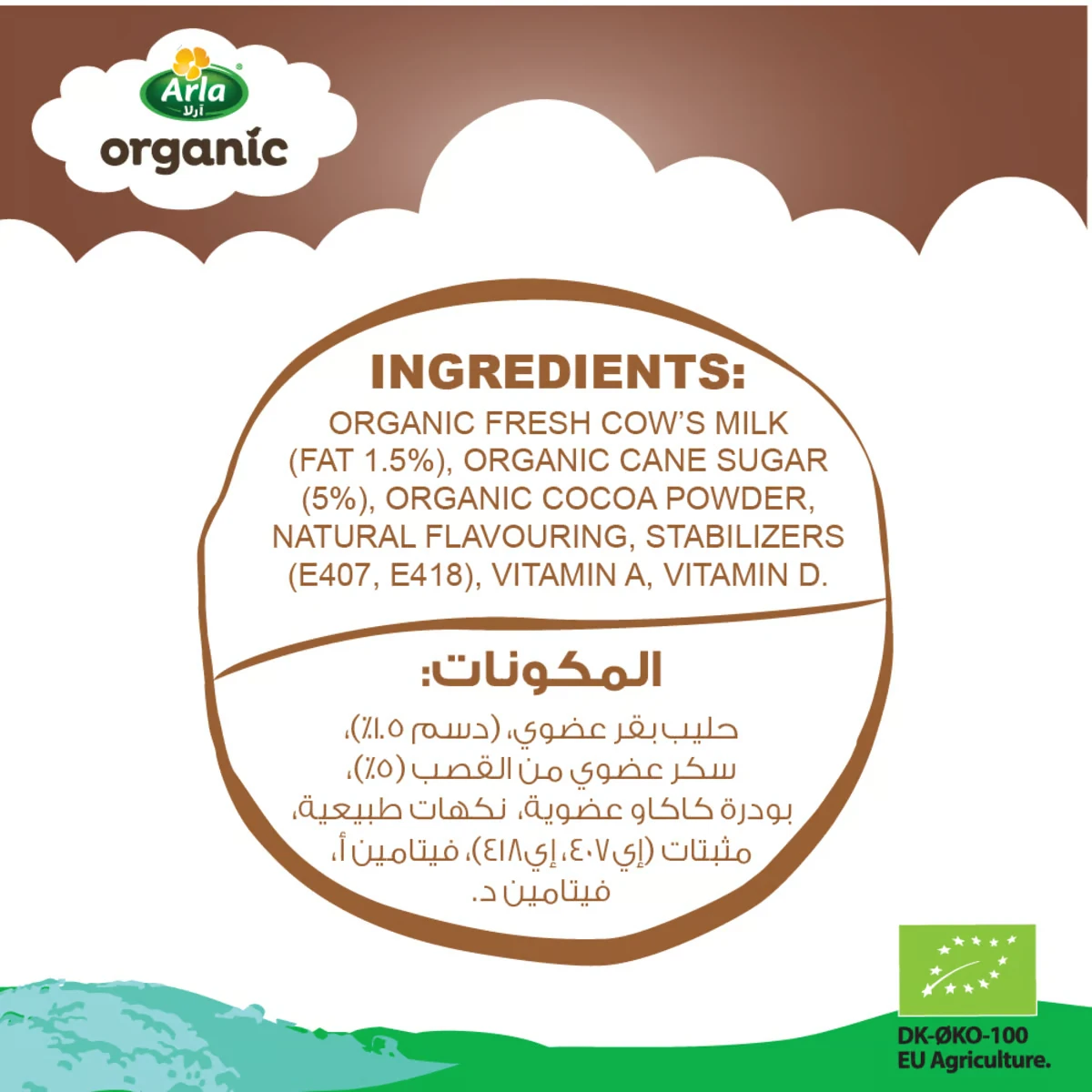 غني بنكهة الشوكولاتة الطبيعية يحتوي على 1.5% دهون فقط حليب عضوي نقي 100% معتمد في أوروبا من إنتاج أكبر شركة ألبان عضوية في العالم مصنوع من أبقار تتجول بحرية غني بالفيتامينات والمعادن والبروتينات مغذي، طعم طازج، طعم نقي بدون هرمونات صناعية ومواد حافظة بدون مضادات حيوية ومبيدات حشرية وكائنات معدلة وراثيًا علبة كرتون مريحة مع قشة سهلة الاستخدام - مثالية للأطفال في المنزل أو أثناء التنقل أو كوجبة خفيفة في صندوق الغداء حليب عضوي للجميع |
