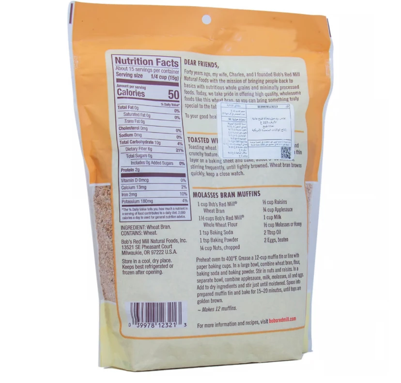 عظيم للسلع المخبوزة نخالة القمح هي الطبقة الخارجية الغنية بالألياف لتوت القمح، ولكنها أكثر بكثير من مجرد مصدر ممتاز للألياف استمتع بنكهة الجوز في المخبوزات مثل الكعك والخبز السريع والكعك والفطائر، أو رشها على الأوعية المقاومة للحرارة والإسكافي قبل الخبز |