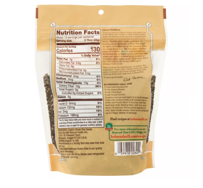 بذور الشيا: تعتبر بذور الشيا العضوية من Bob's Red Mill طريقة سهلة لإضافة دفعة من التغذية إلى أي وجبة أو مشروب أو حلوى. البذور الفائقة: مليئة بمضادات الأكسدة وأحماض أوميجا 3 الدهنية، كل ما يتطلبه الأمر هو ملعقتان لإضافة دفعة مغذية. نكهة مرنة: حلوة أو مالحة. مغذية أو متسامحة. عشاء مشبع أو مشروب منعش. الاحتمالات لا حصر لها مع بذور الشيا صغيرة ولكنها قوية: لا تدع مظهرها الصغير والمتواضع يخدعك. تعتبر بذور الشيا من الأطعمة الفائقة الداعمة للطاقة |