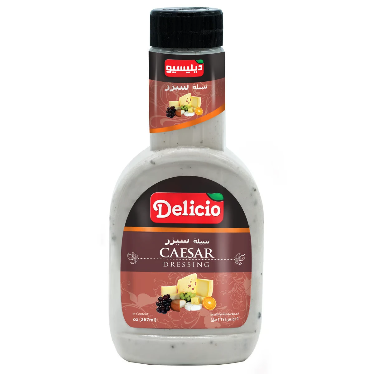 "استمتع بنكهة السيزر الشهية مع تتبيلة ديليسيو. تمتاز هذه الصلصة بمذاقها المقرمش والمميز، مما يجعلها مثالية لتحسين طعم سلطاتك ووجباتك المفضلة. مثالية للاستخدام كصلصة للسلطات أو تتبيلة للوجبات الخفيفة." |