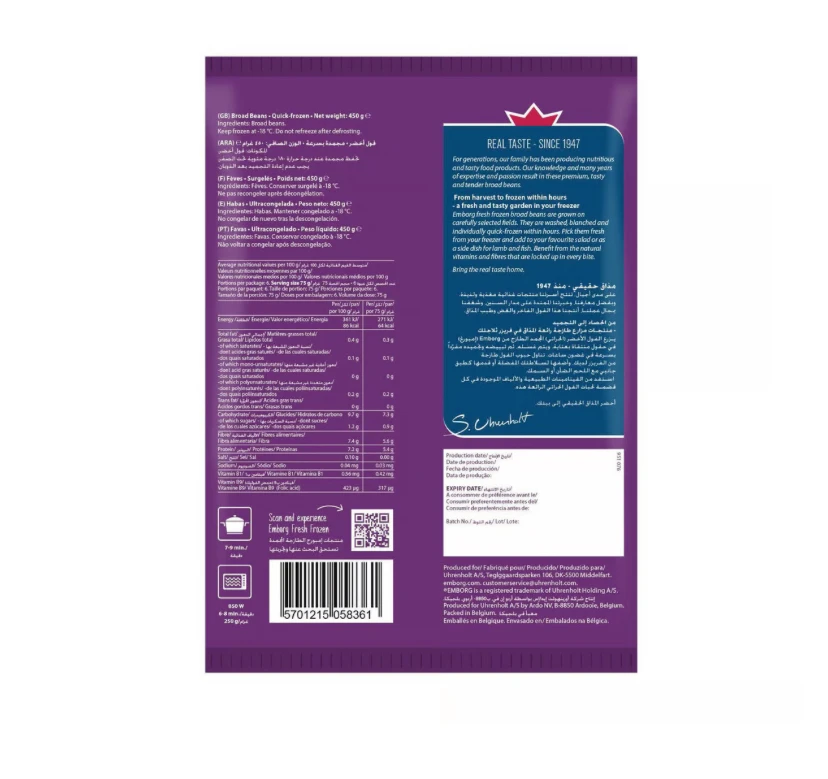 فول أوروبي طري مختار بعناية ومعالج لضمان مذاقه وجودته مصدر غني بالفيتامينات والألياف مثالي في السلطات أو كطبق جانبي من لحم الضأن والأسماك يمكن استخدامه في يخنات الخضار والحساء والطواجن للحصول على المزيد من البروتين والملمس مُعبأ ومُخزن بطريقة صحية للحفاظ على الخصائص الطبيعية |