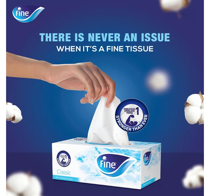 فاين كلاسيك مناديل وجه بيضاء معقمة طبقتين 100 منديل