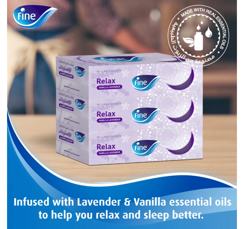 فاين الاسترخاء مناديل الوجه بالفانيليا واللافندر طبقتين 3 × 120 منديل