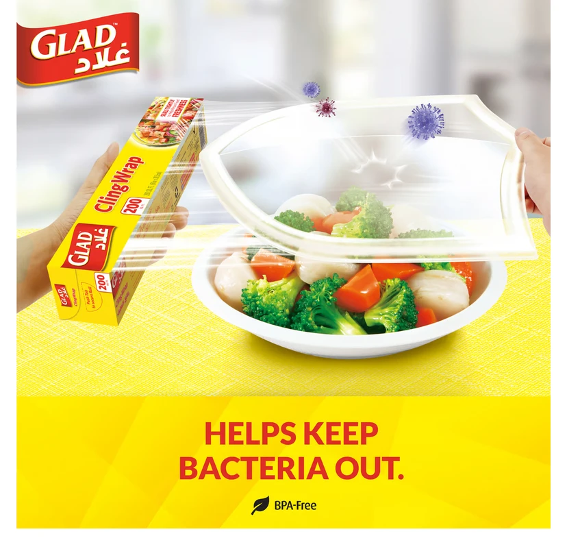 حافظ على ما تحب طازجا: يقدم لك غلاد لفافة لاصقة تساعد في الحفاظ على نضارة طعامك. استخدم هذا الغلاف لتقسيم طعامك وتحضيره وتبخيره وحمايته من أجل راحتك.