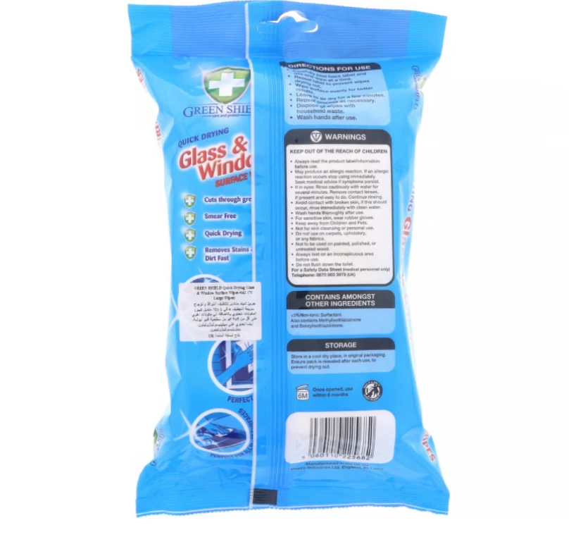 مناديل تنظيف الأسطح الزجاجية والنوافذ 70 منديلًا كبيرًا تجف بسرعة تزيل الشحوم لا تترك أي أثر تزيل البقع والأوساخ بسرعة |