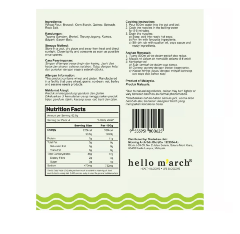 هلو مارش نودلز مسطحة بالبروكلي والكينوا 250 جم