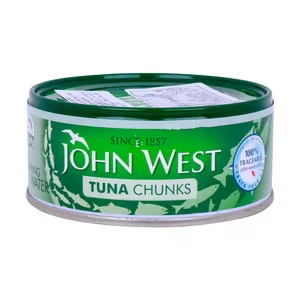 "جون وست تونة قطع في الماء هي خيار مثالي لمحبي التونة الطبيعية والخالية من الدهون الزائدة. تأتي القطع في ماء نقي، مما يحافظ على نكهتها الطبيعية وقيمتها الغذائية، مثالية للاستمتاع بها في سلطة خضراء أو كوجبة خفيفة."