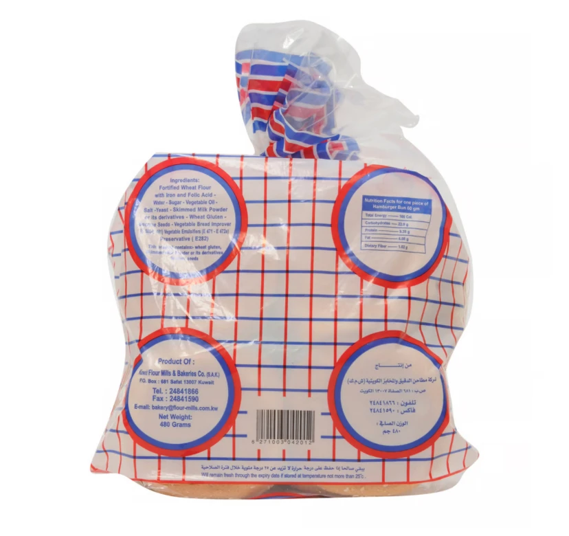 مطاحن الدقيق والمخابز الكويتية خبز هامبرغر 8 قطع