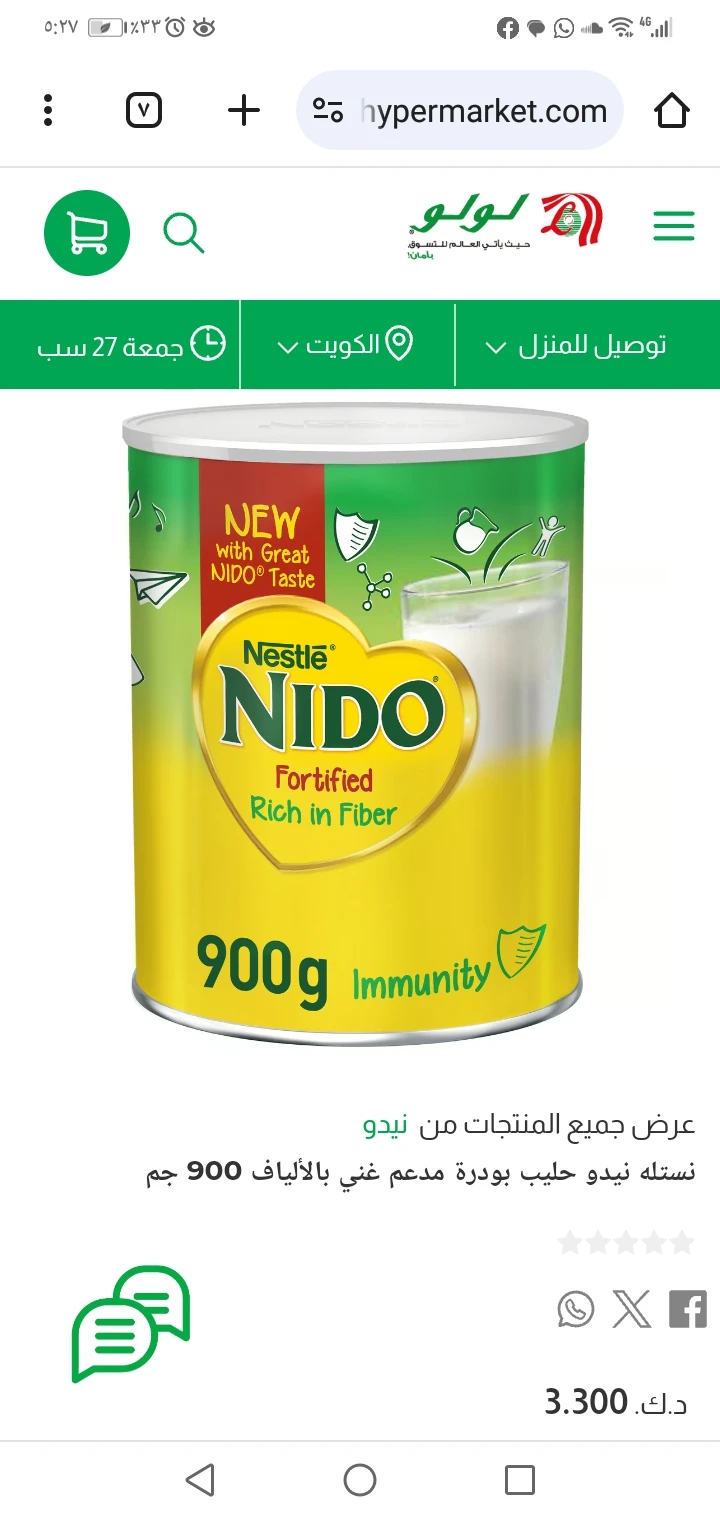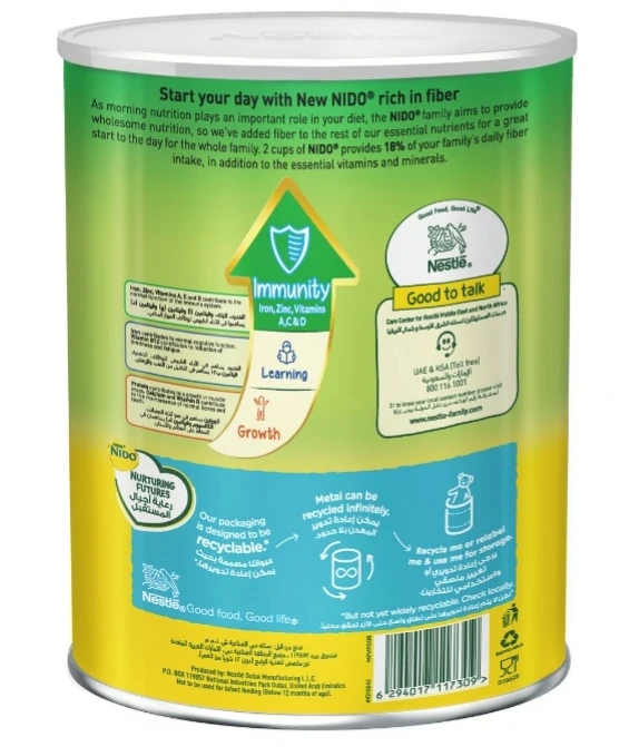 نستله نيدو حليب بودرة مدعم غني بالألياف 900 جم