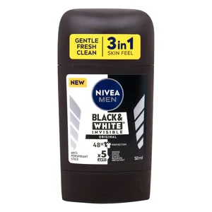 "استمتع بالحماية القوية ضد التعرق مع نيفيا للرجال مزيل العرق الأسود والأبيض الأصلي غير المرئي. تركيبته الفعّالة تحمي من رائحة التعرق وتضمن عدم ترك أثر أبيض على الملابس السوداء أو أثر أسود على الملابس البيضاء." |