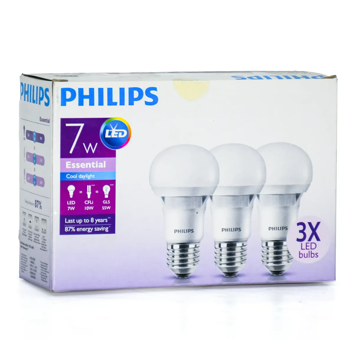 فيليبس 7W اضاءة LED، كول داي لايت، 3 حبات، E27
